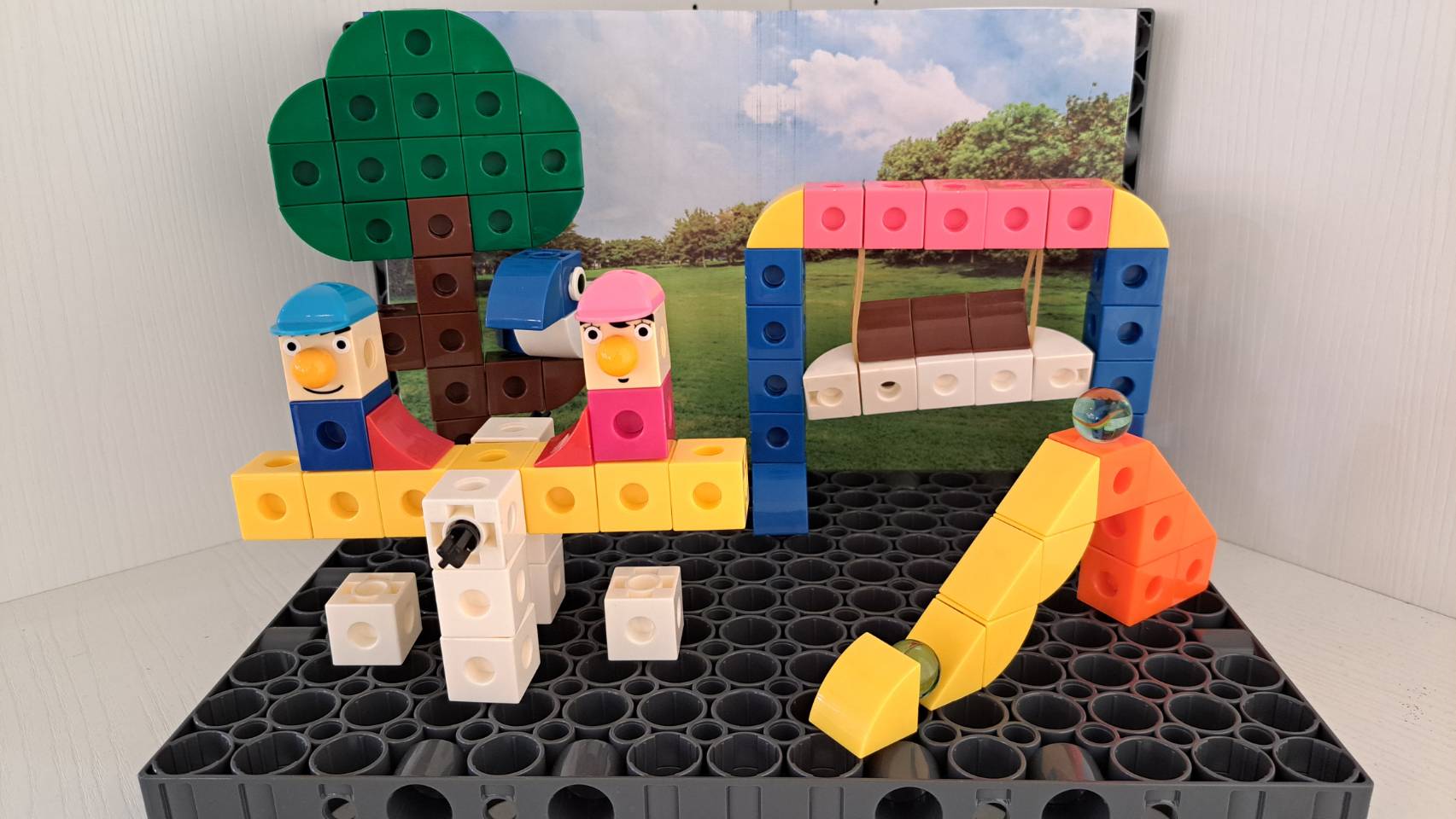 為此,樹懶老師總是在思考:是否能設計出一種既簡單上手,又能啟發孩子創造力與理解科學原理的模型?於是決定以2公分積木為主軸,結合孩子最熟悉的公園主題,設計出這套充滿童趣與學習價值的STEAM公園組!