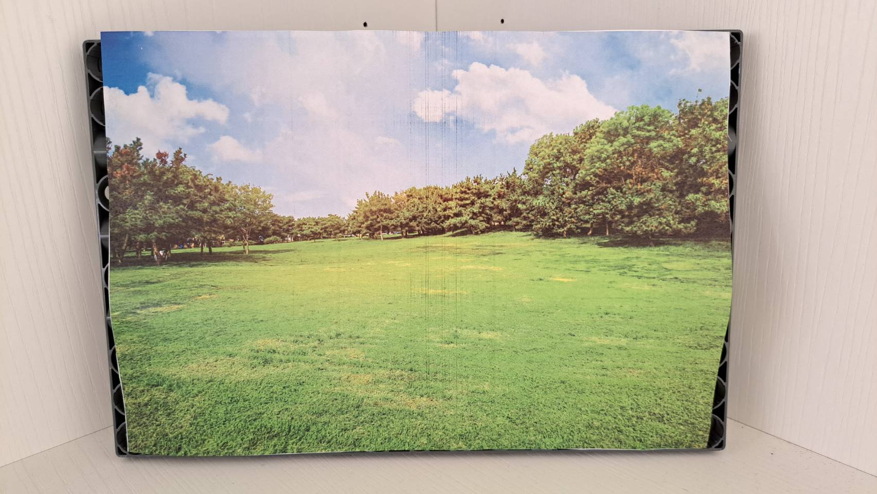 2. 增加一些背景圖能更有情境感,你可以找網路上找喜歡的公園圖片,將其黏貼於另一個大底盤上,放置於模型後方。
