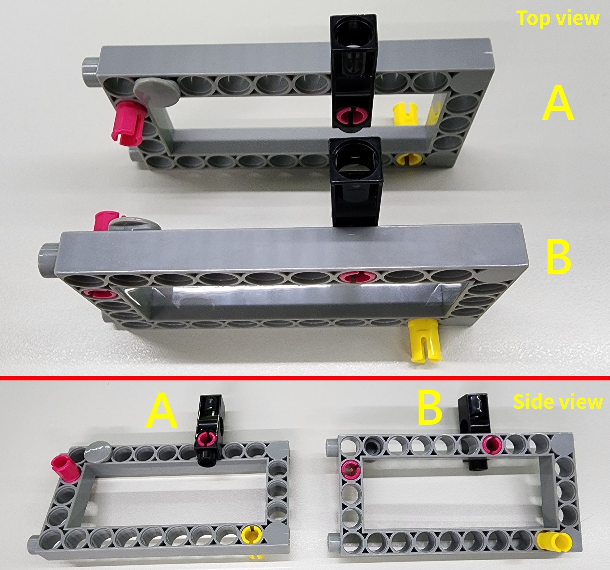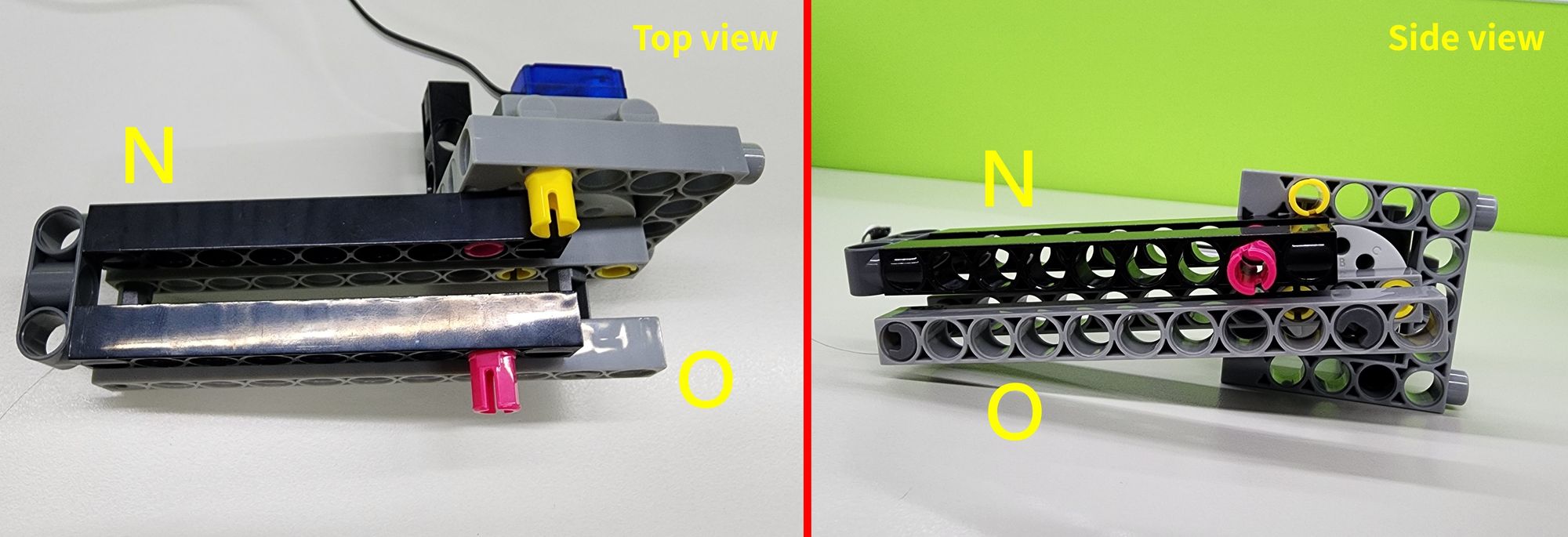 After installing the double-leg linkage, check the positioning of both C-30mm AXLE Ⅱ. For optimal movement, one axle should be positioned higher and the other lower (Figure 24). If the assembly is incorrect, remove the C-60T GEAR, adjust the positioning, and then reinstall the linkage and C-30mm AXLE Ⅱ after verifying their alignment.