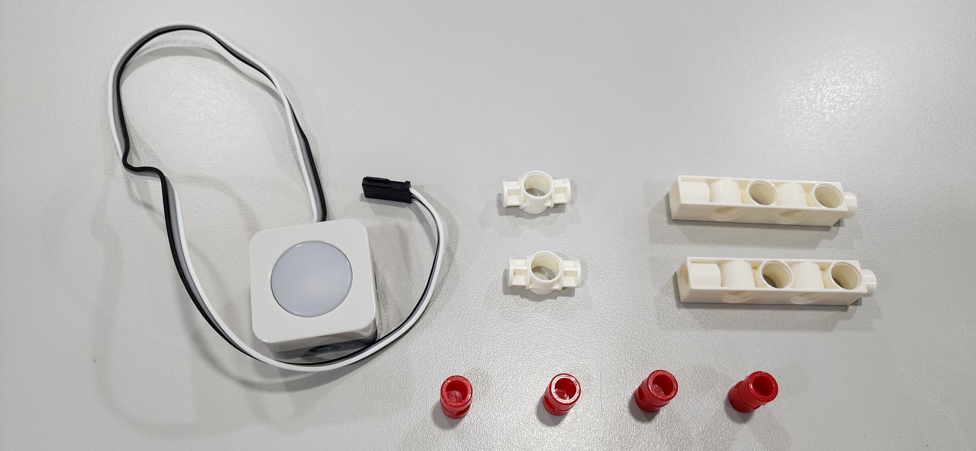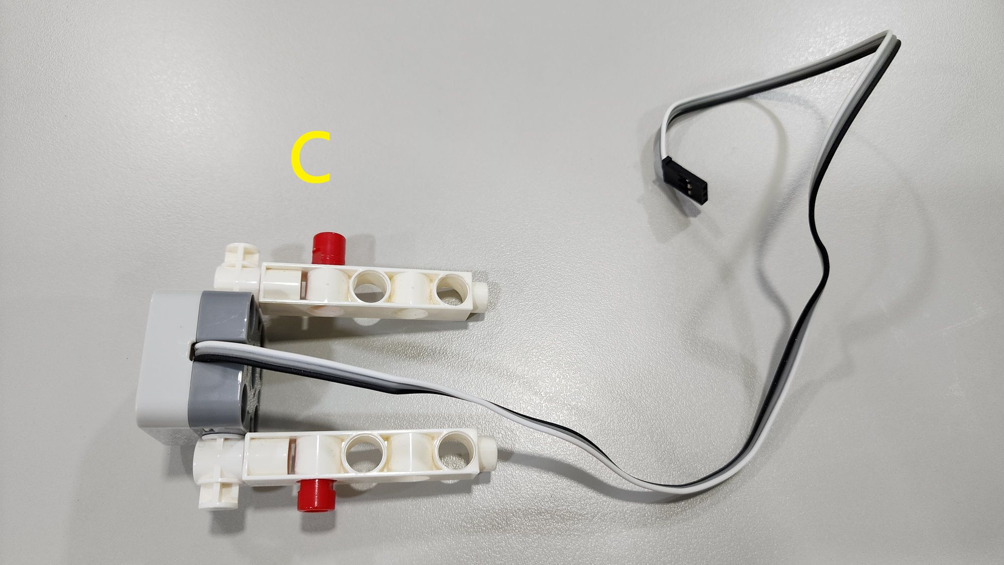 第四步我們要來安裝多色LED燈座,需要使用到180度角度伺服馬達、2凸單孔轉向結合器、5孔超長條以及長結合鍵(圖十),將它們依照圖示安裝在一起,完成部件C的製作(圖十一)。