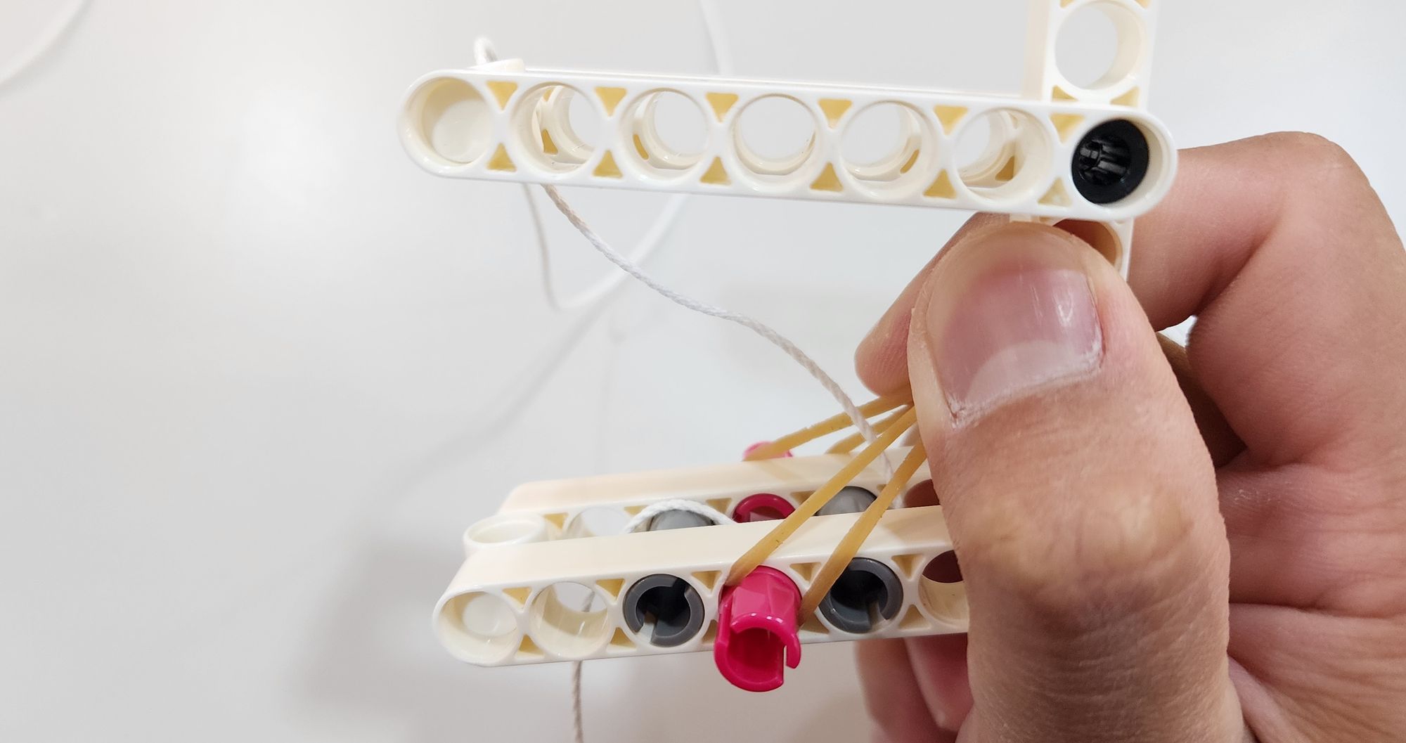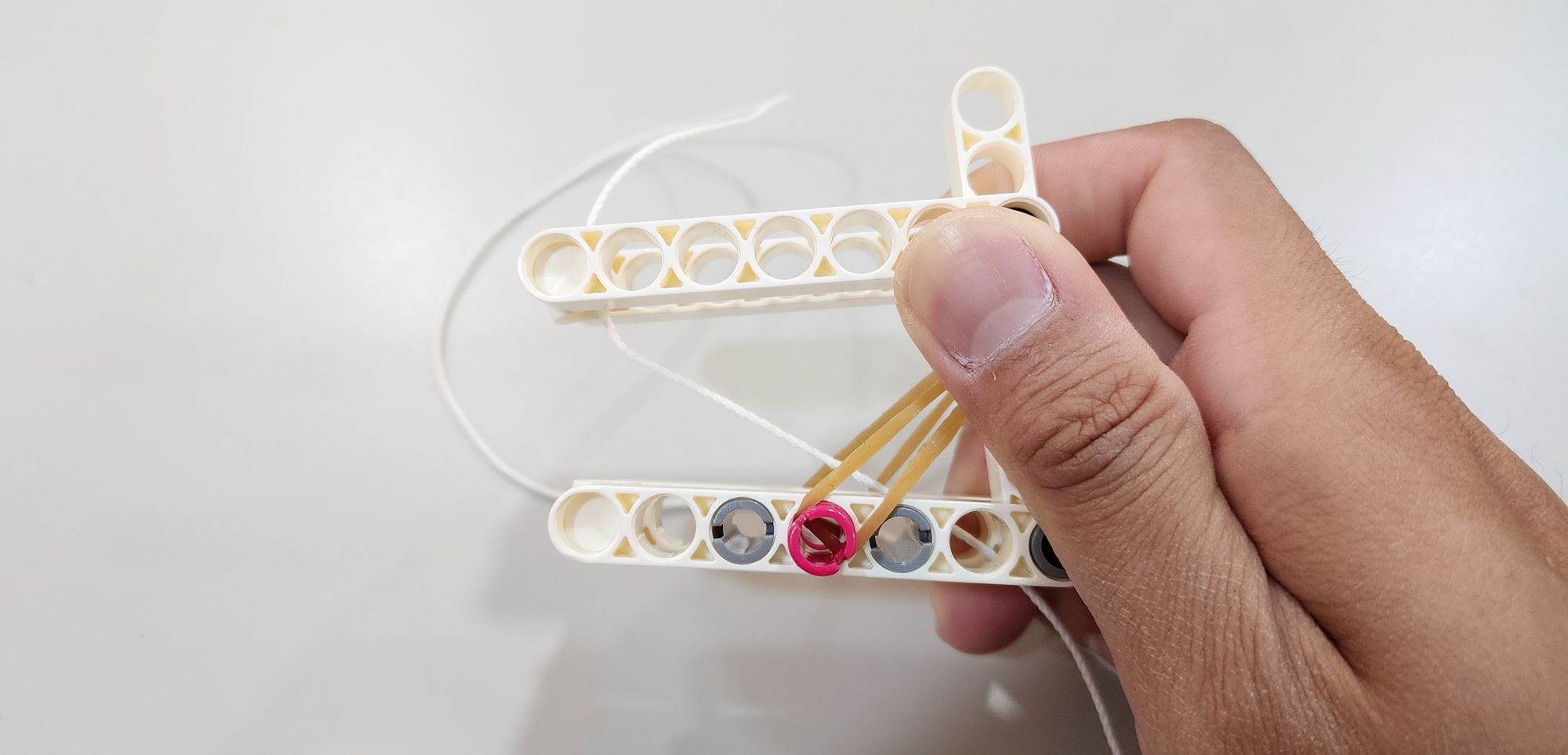 這次所製作的爬樹小猴子結構看似十分簡單,實際上卻讓浣熊老師在發想時傷透了腦筋,因為小猴子模型主要透過手部與腳部的摩擦力差異進行移動,如何精確控制這兩者與繩子的摩擦力大小是最困難的,浣熊老師也是在測試了十餘種零件後才找到最佳的設計(使用栓扣件與手部結合)。大家不訪可以實驗看看,是否有更適合的零件讓小猴子能夠產生更好的爬行效果。