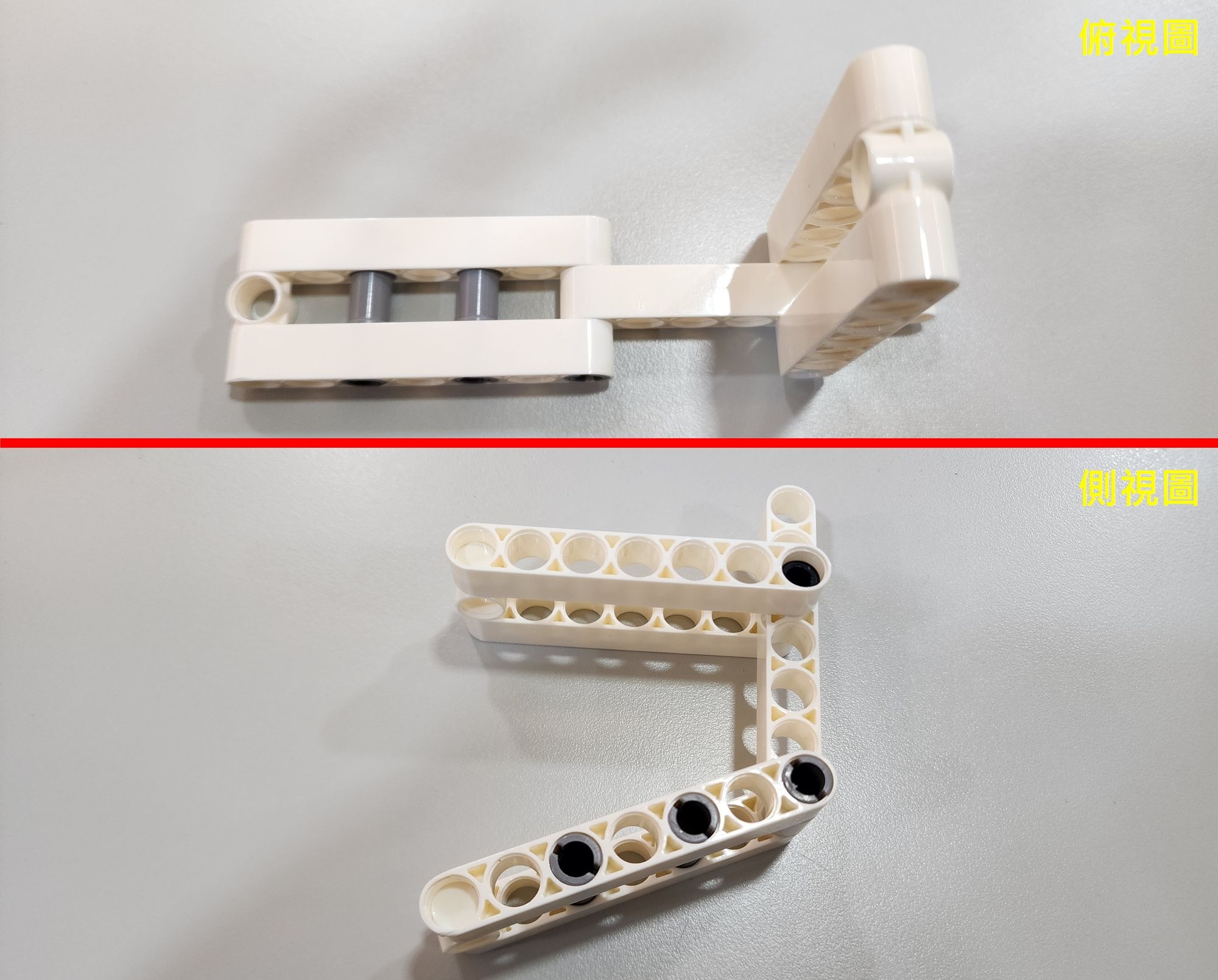 接著同樣將它們安裝在7孔圓角長條的左右兩側(圖五),完成足部的製作。